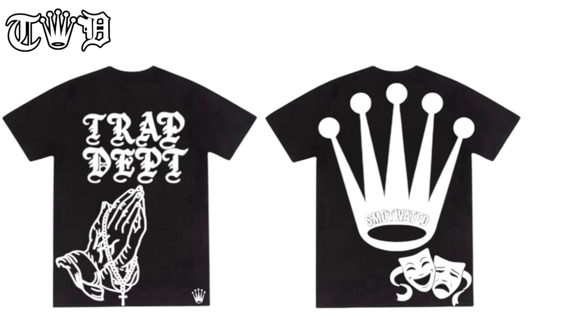 STREET WEAR TRAP DEPT WITH ROLEX CROWN, PRAYER HANDS ROSARY.